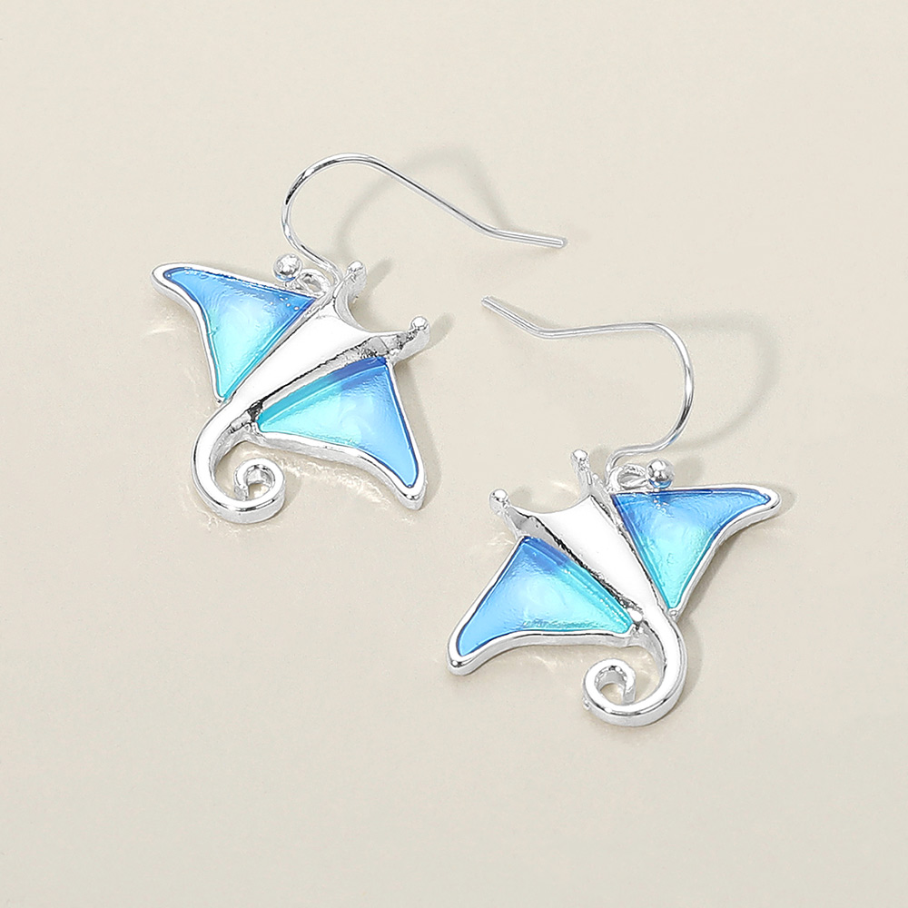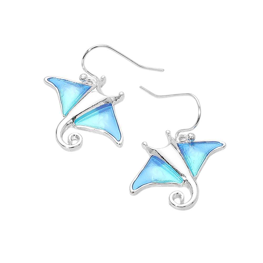 Details • Size : 0.8" X 1.25" • Fish Hook Back • Whimsical manta ray dangle earrings inspired by ocean life and coastal charm. A playful yet elegant accessory with fluid movement, ideal for beach boutiques, resort shops, summer collections, gift stores, and sea-inspired jewelry displays. • Lead and Nickel Compliant