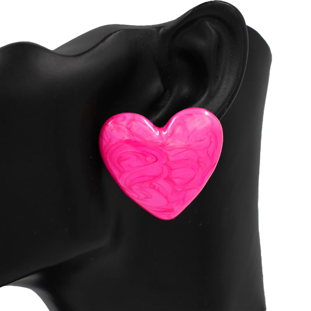 Details • Size : 1.5" X 1.3" • Post Back • Charming heart-shaped stud earrings designed with a smooth, polished finish and bold silhouette. Perfect for boutiques and gift collections, these studs offer playful elegance for daily wear, casual outfits, date nights, and trendy seasonal styling. • Lead and Nickel Compliant