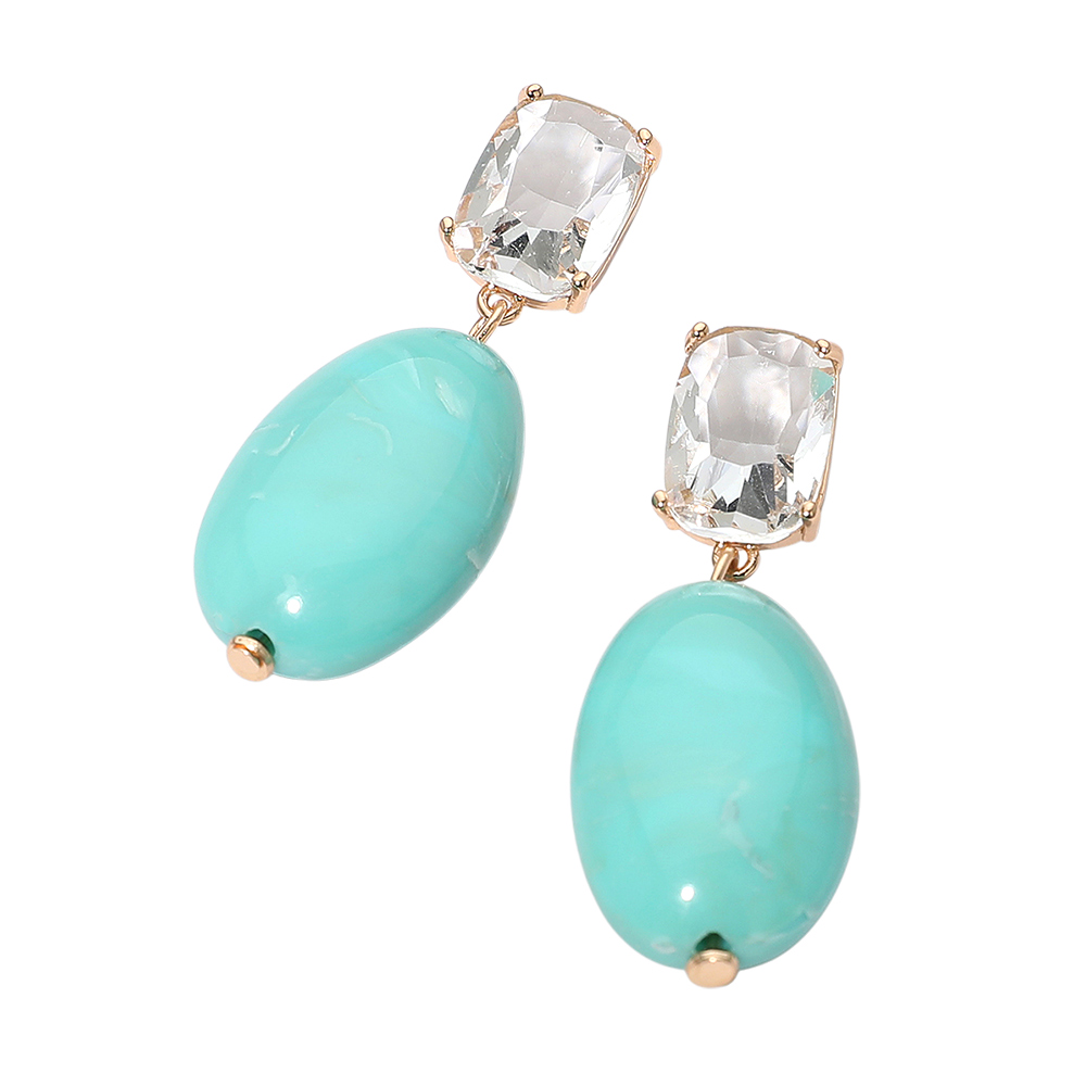 Boho Beaded Trim Teardrop Stone Frame Dangle Earrings