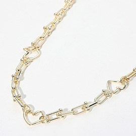 Bold Textured Metal Heart Accent Bamboo Link Statement Necklace