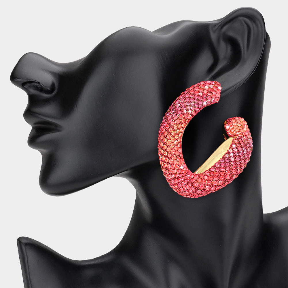 Oversized Bling Rhinestone Studded Twisted Open Teardrop Evening Hoop Earrings