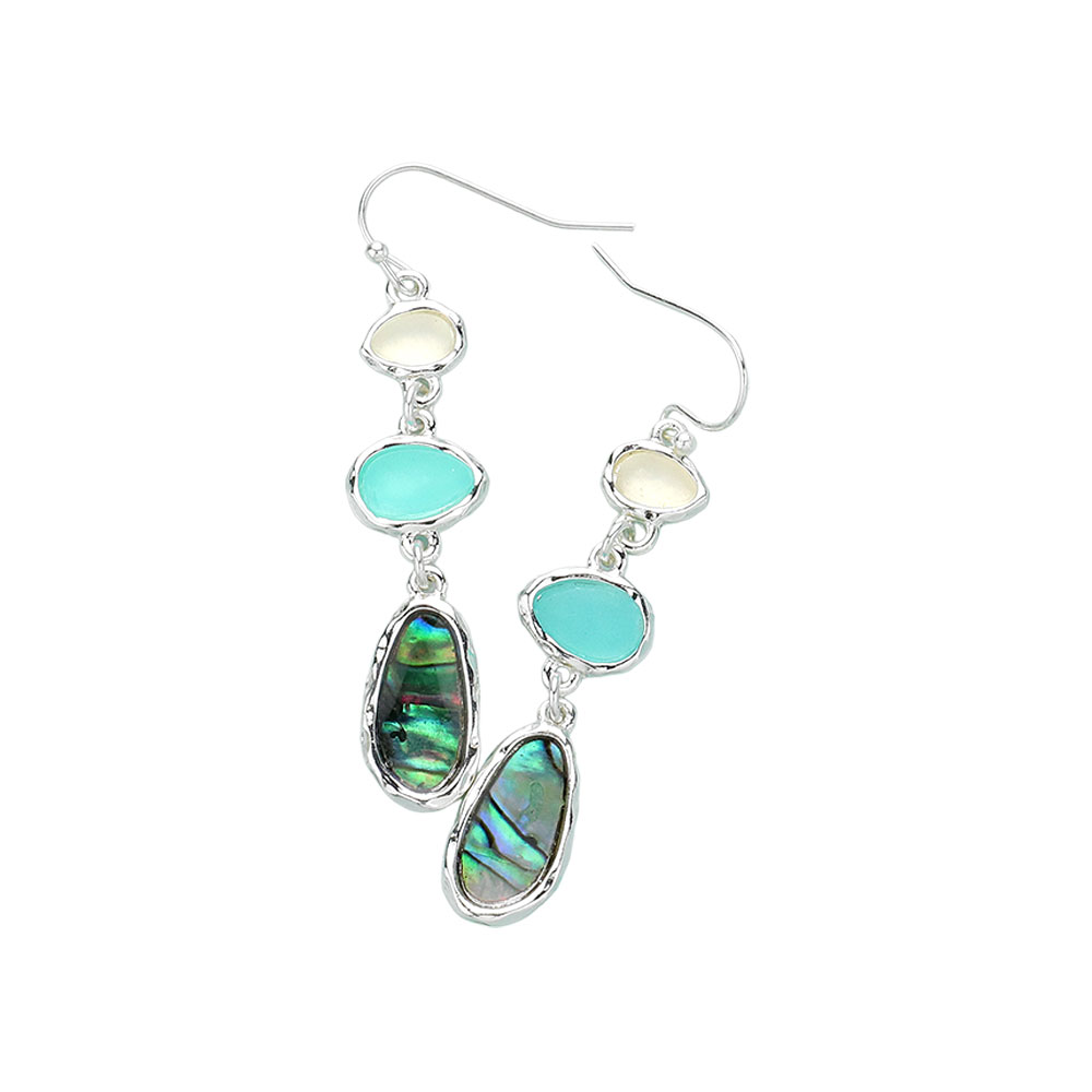 Abalone Pointed Enamel Butterfly Dangle Earrings