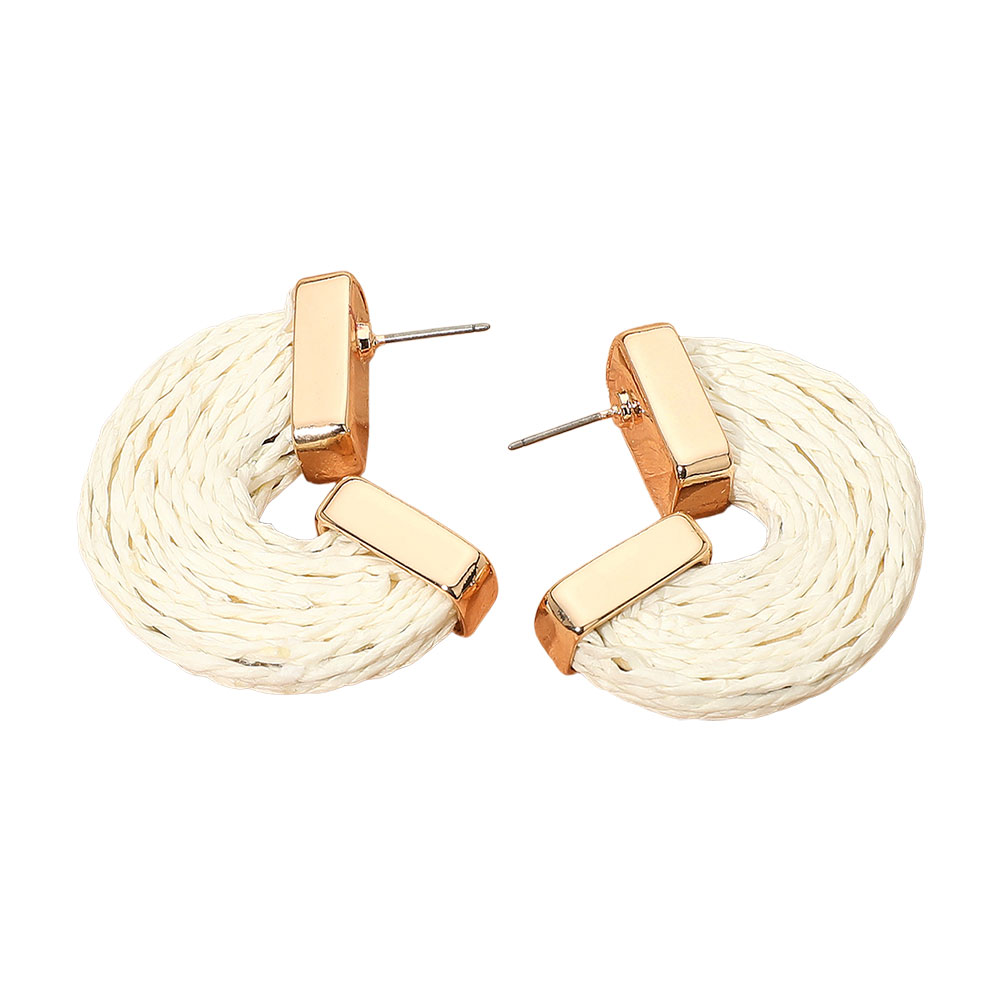 • Elevate your accessory collection with bold hoop earrings featuring a textured raffia braided design and polished accents. A versatile statement piece ideal for everyday styling or adding flair to evening and special-occasion looks.