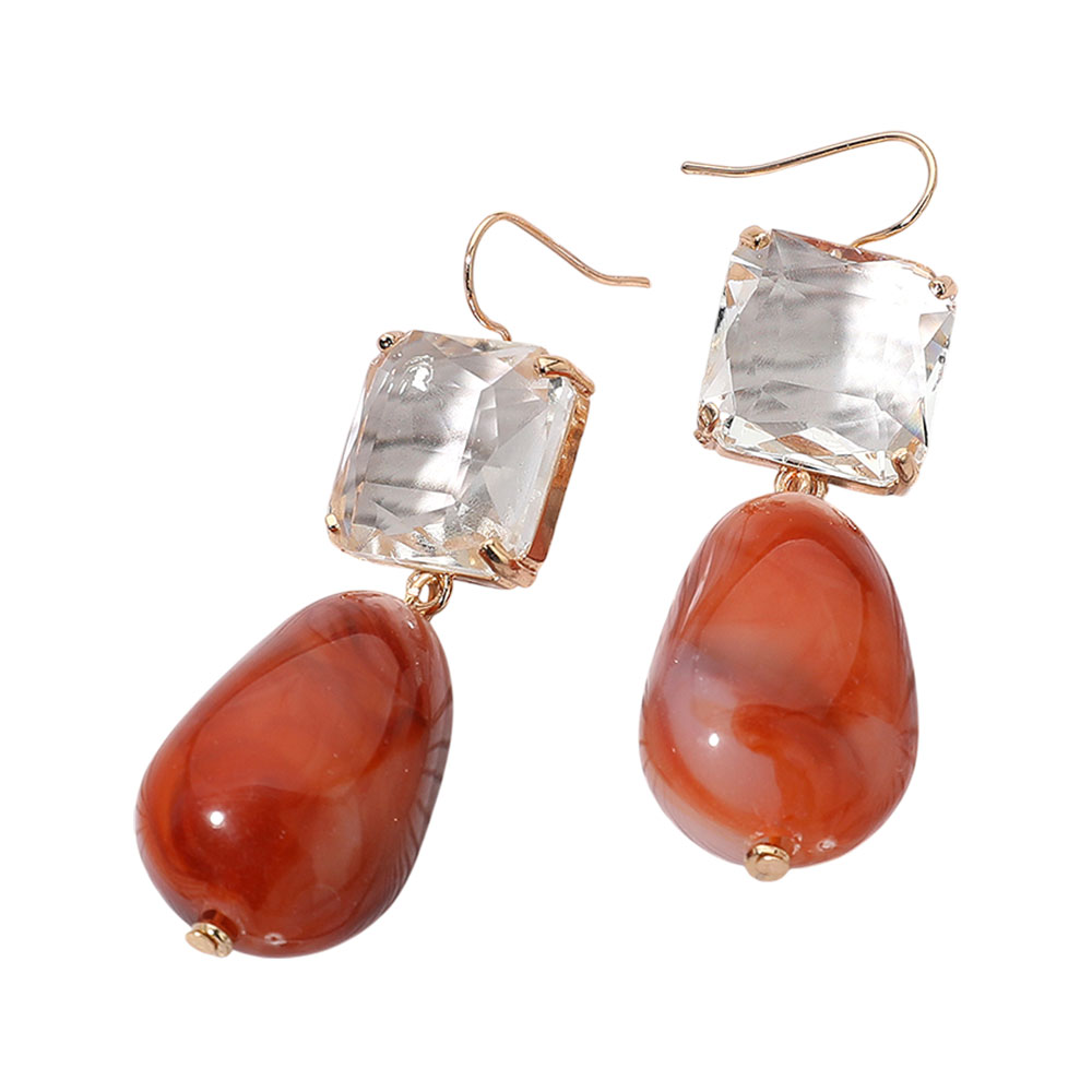 Rectangular Stone Cluster Accent Marbled Resin Pebble Drop Dangle Earrings Rectangular Stone Cluster Accent Marbled Resin Pebble Drop Dangle Earrings