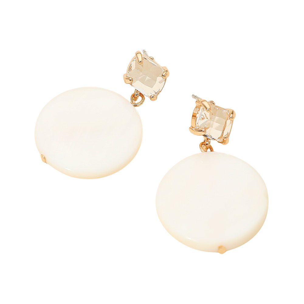 Details • Size : 0.6" X 2.5" • Post Back • These elegant drop earrings feature smooth round discs paired with sparkling gem accents for a refined, modern look. Lightweight and versatile, they elevate both casual and dressy outfits, making them a stylish accessory for everyday wear or special occasions. • Lead and Nickel Compliant