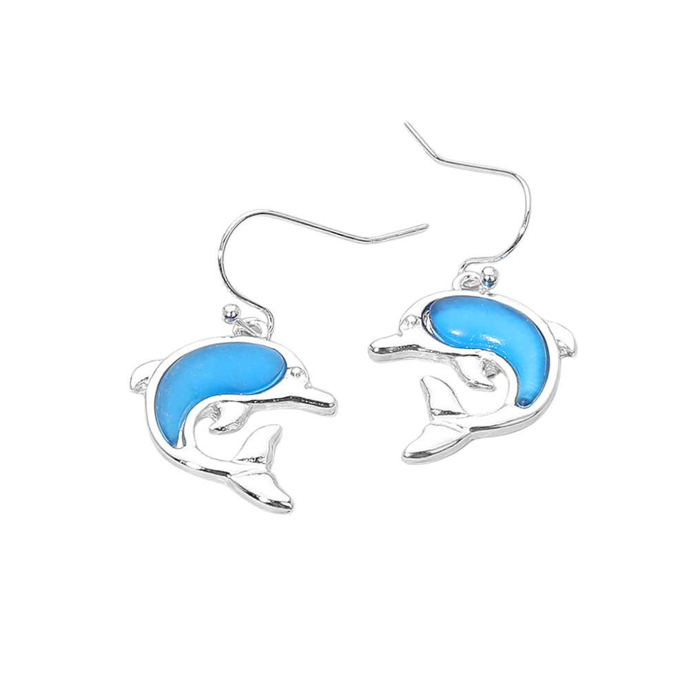 Details • Size : 0.75" X 1.25" • Fish Hook Back • Charming dolphin dangle earrings designed with a playful ocean-inspired silhouette and smooth flowing shape. Lightweight hook styling offers comfortable movement and easy wear, making these earrings ideal for everyday outfits, summer looks, beach themes, gift shops, and seaside accessory collections. • Lead and Nickel Compliant