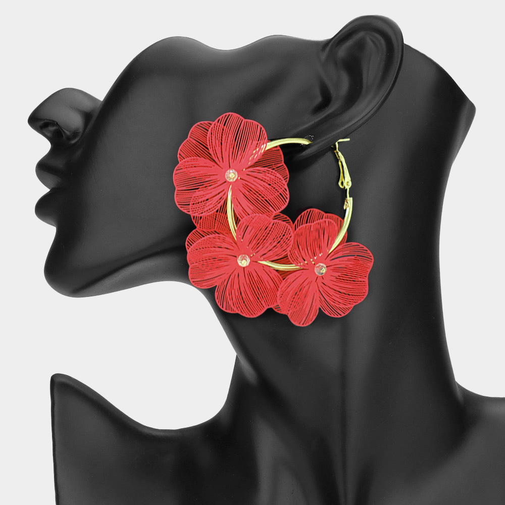 • Make a bold impression with these white triple-bloom floral earrings. Lightweight and artistic, they add a dramatic yet elegant touch to your look. Perfect for fashion-forward styling and standout occasions.