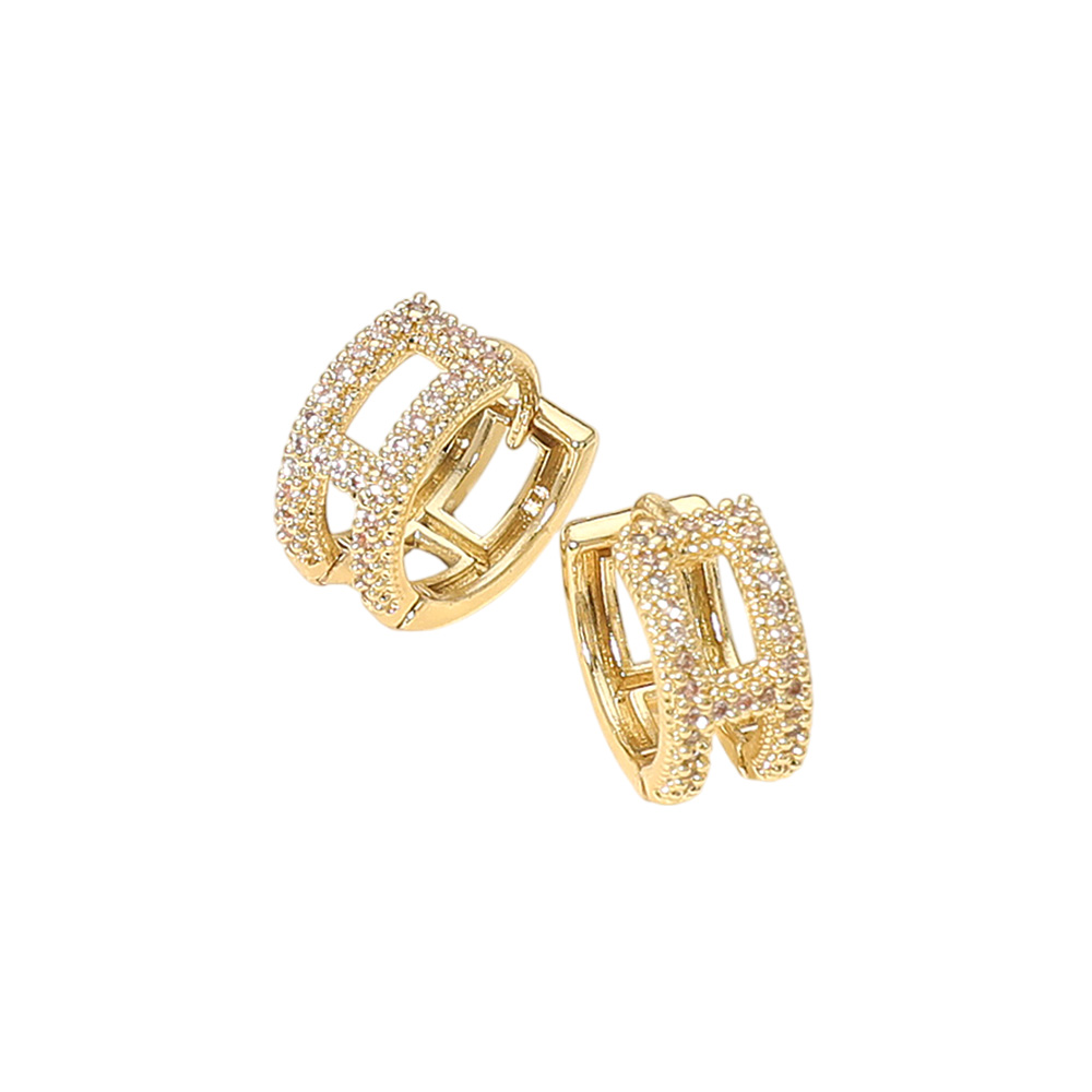 14K Gold Dipped CZ Stone Paved Mini Hoop Earrings