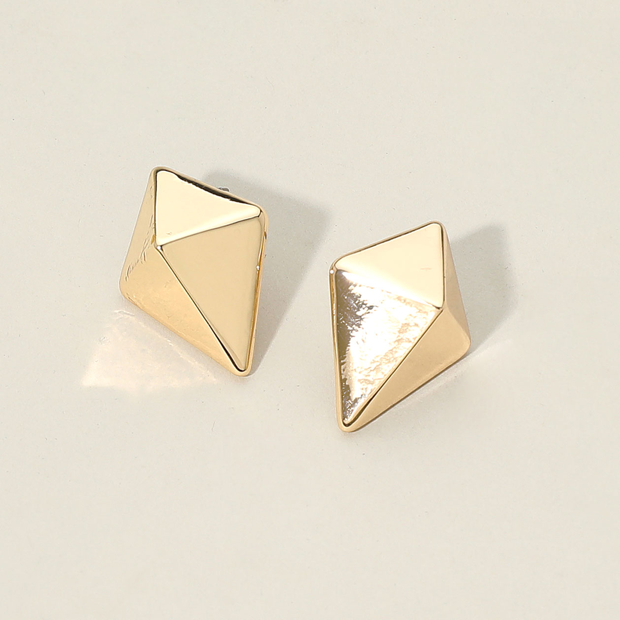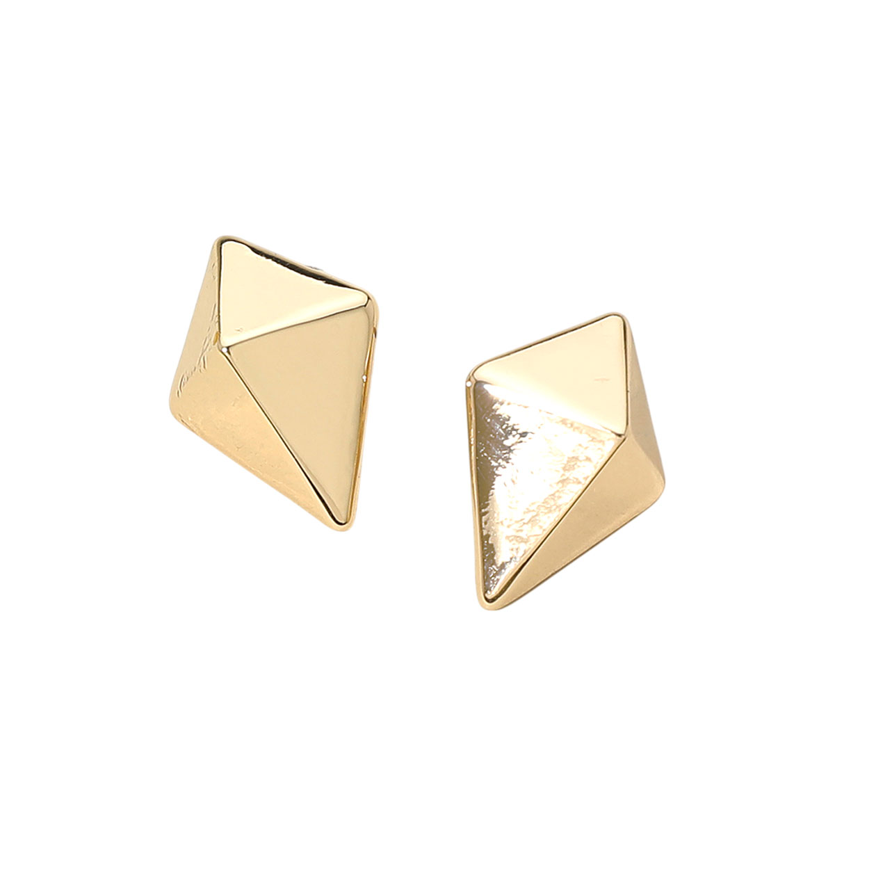 Details • Size : 0.8" X 1.2" • Post Back • Elevate your everyday look with these geometric triangle earrings, featuring a bold modern shape that adds an artistic touch to any style. Sleek and versatile, they offer a minimalist statement that pairs effortlessly with casual, work, or night-out outfits, giving your accessories a contemporary edge. • Lead and Nickel Compliant • Made In Korea • Gold Dipped