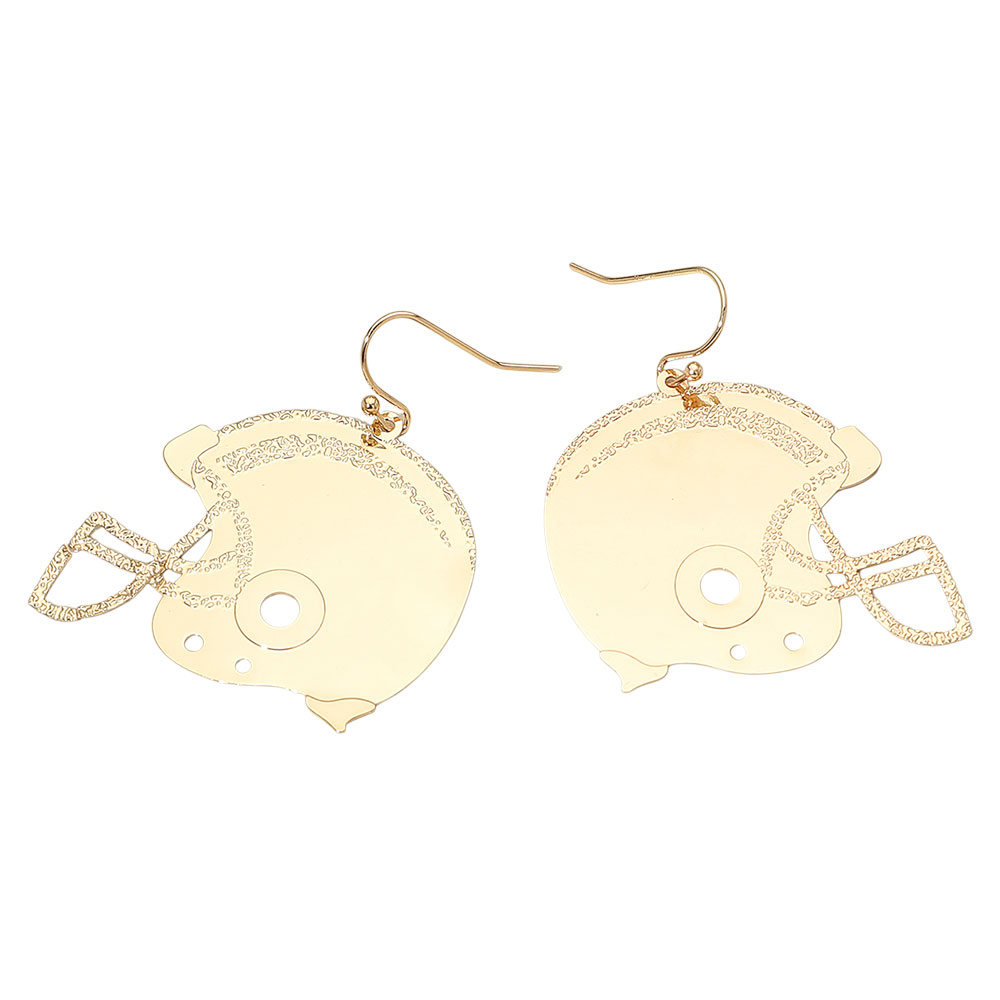 Details • Size : 1.5" X 2" • Fish Hook Back • Lightweight football helmet dangle earrings with etched detailing, perfect for gameday outfits, tailgate looks, and spirited fan accessories. Stylish sports-themed statement design for showing team pride at any event. • Brass • Lead and Nickel Compliant