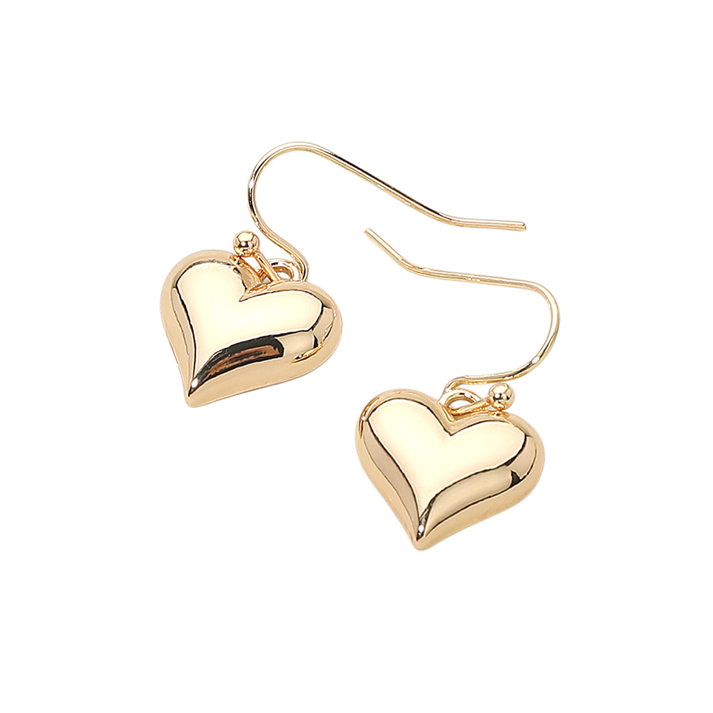 • These polished heart drop earrings offer a timeless, romantic look with their smooth, reflective finish and elegant silhouette. Lightweight and versatile, they add a touch of charm to everyday outfits or special-occasion styles, making them a beautiful addition to any jewelry collection.