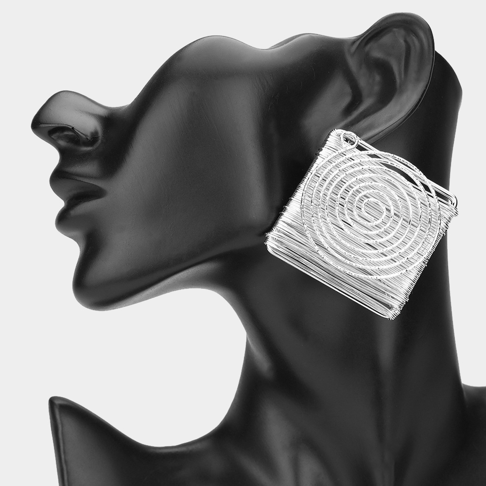 Metal Wire Wrapped Spiral Pointed Square Earrings