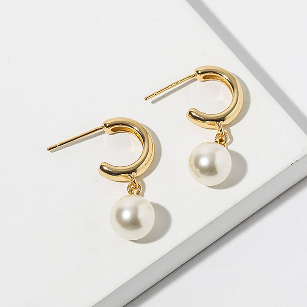 • Elegant pearl drop mini hoop earrings featuring a smooth curved silhouette paired with a classic round drop accent. Designed to add soft movement and refined charm, these earrings transition effortlessly from everyday wear to dressier occasions, making them a versatile addition to any accessory assortment.