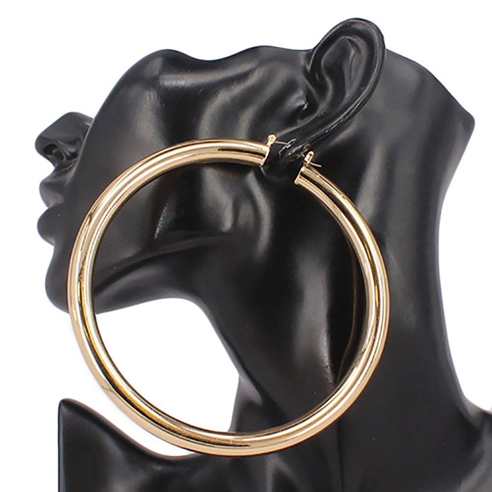 Oversized Chunky Metal 4 Inch Hoop Pin Catch Earrings