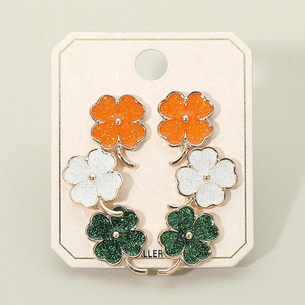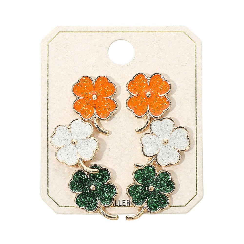 Details • Size : 0.5" X 0.75" • Post Back • Festive shamrock stud earrings designed for St. Patrick’s Day celebrations. Features a playful clover motif that adds seasonal charm to outfits, party looks, and themed displays. Ideal for holiday gifting, event styling, and boutique assortments seeking cheerful, themed accessories. • Lead and Nickel Compliant
