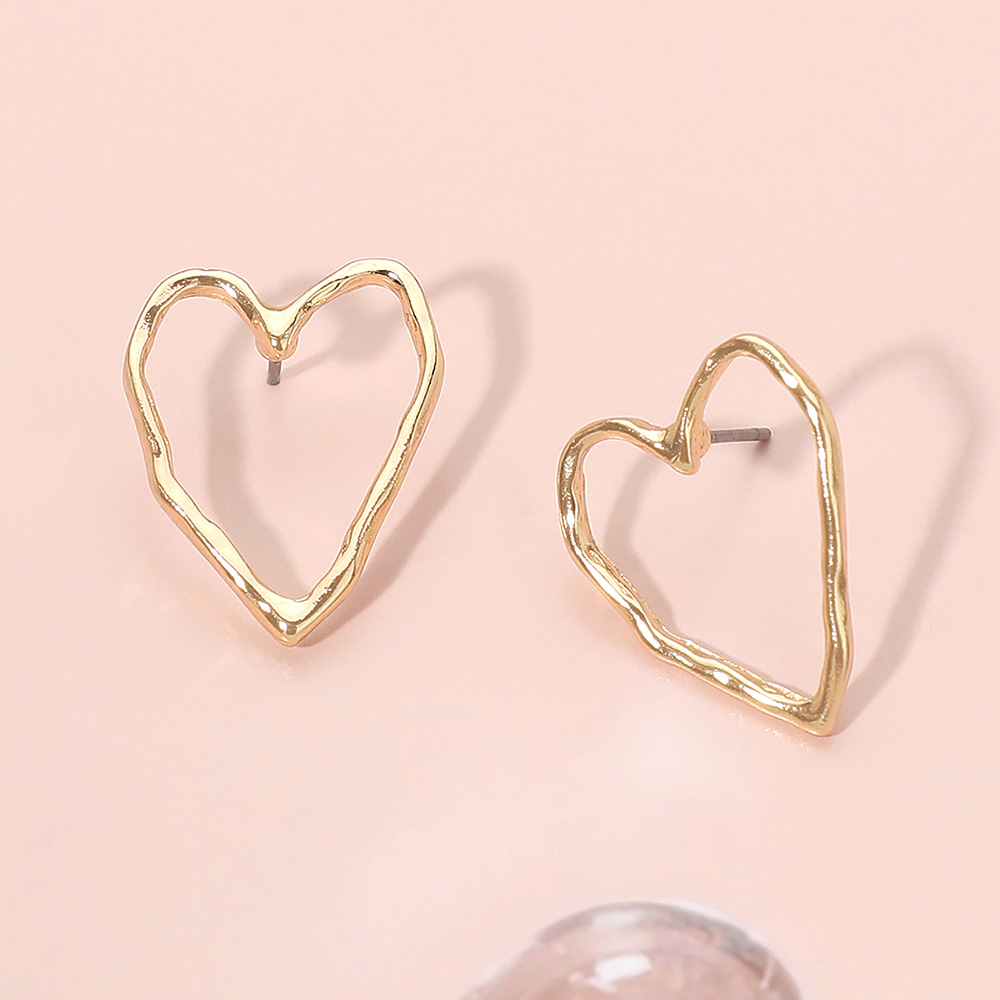 Metal Organic Outline Open Heart Stud Earrings Metal Organic Outline Open Heart Stud Earrings