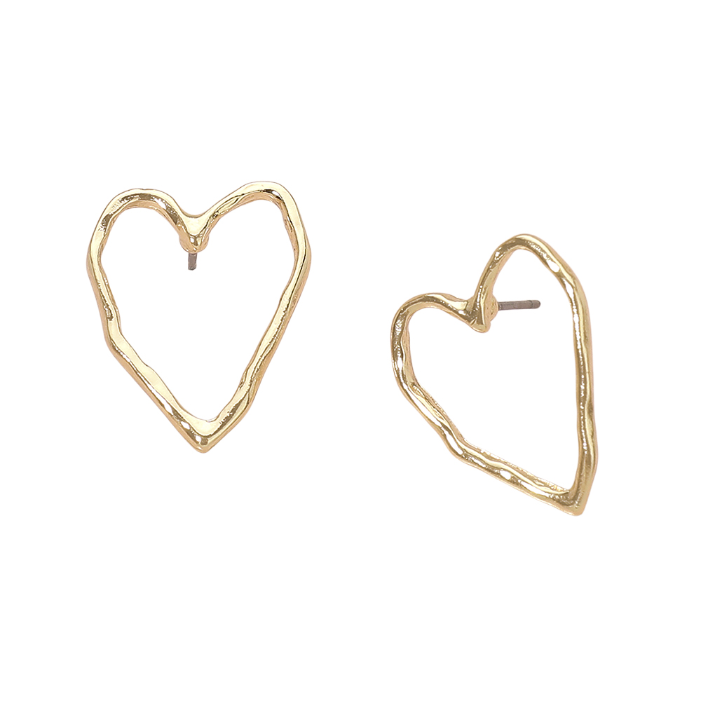 Metal Organic Outline Open Heart Stud Earrings