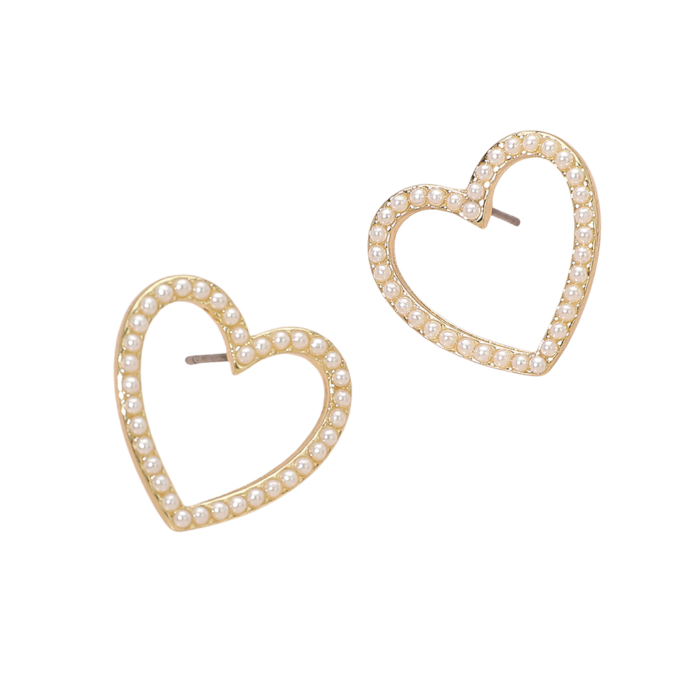 Pearl Trim Open Heart Stud Earrings Pearl Trim Open Heart Stud Earrings