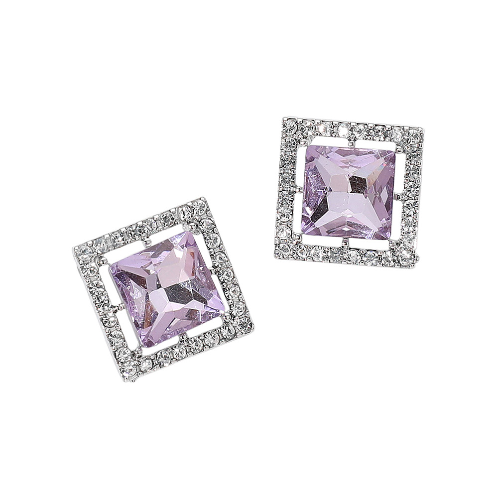 Details • Size : 1" X 1" • Post Back • Elegant square-cut gemstone stud earrings featuring a framed design with sparkling accent stones. A chic and modern accessory that adds refined shine to both everyday outfits and special occasions. • Lead and Nickel Compliant