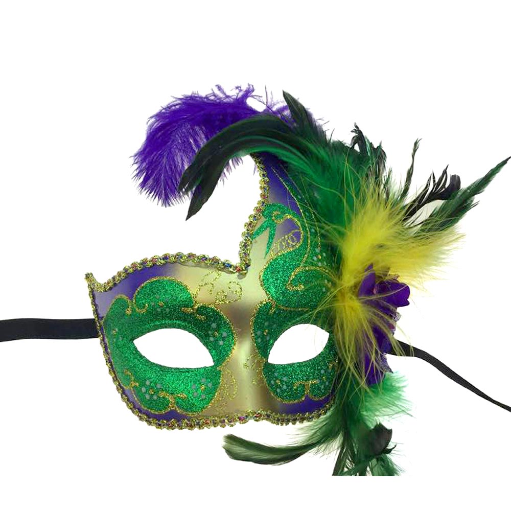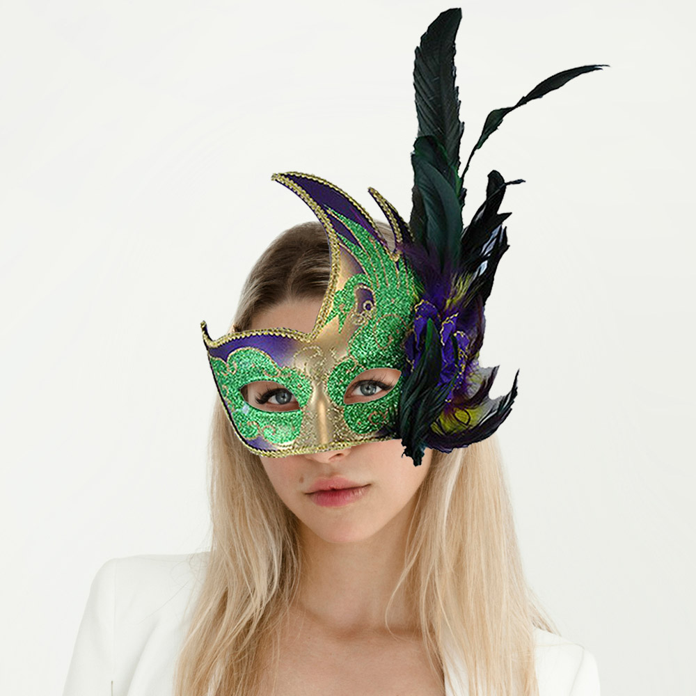 Feather Rhinestone Accent Venetian Masquerade Party Mask