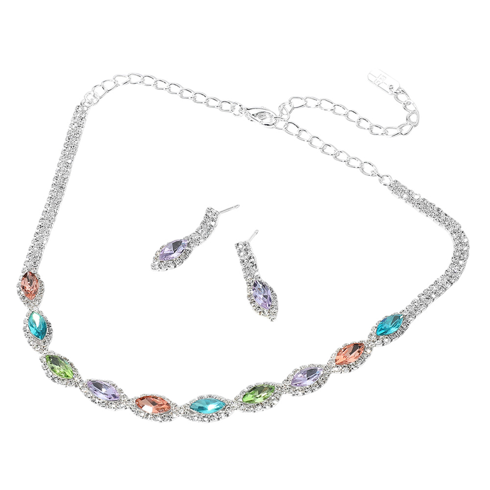 Marquise Stone Cluster Link Rhinestone Paved Evening Choker Necklace