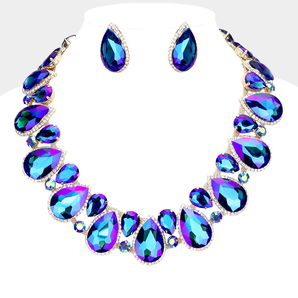 Crystal Rhinestone Trim Teardrop Collar Evening Necklace