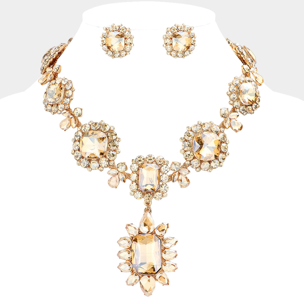 • Elegant statement necklace and earring set featuring brilliant crystal accents in a bold design. Perfect for weddings, formal events, or evening wear, this dazzling jewelry set adds glamour and sophistication to any outfit with its radiant sparkle and timeless appeal.
