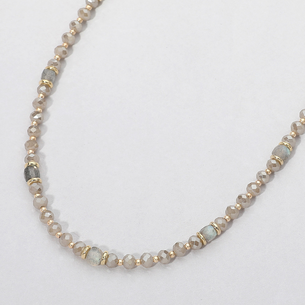 Details • Necklace Size : 14.5" + 2.5" L • Decor Size : 0.2" L • Refined necklace featuring precision-cut beads spaced along a delicate strand for subtle shimmer and clean lines. Lightweight with a comfortable fit, ideal for layering or solo wear. Complements everyday outfits, work styling, and evening looks with effortless versatility. • Lead and Nickel Compliant