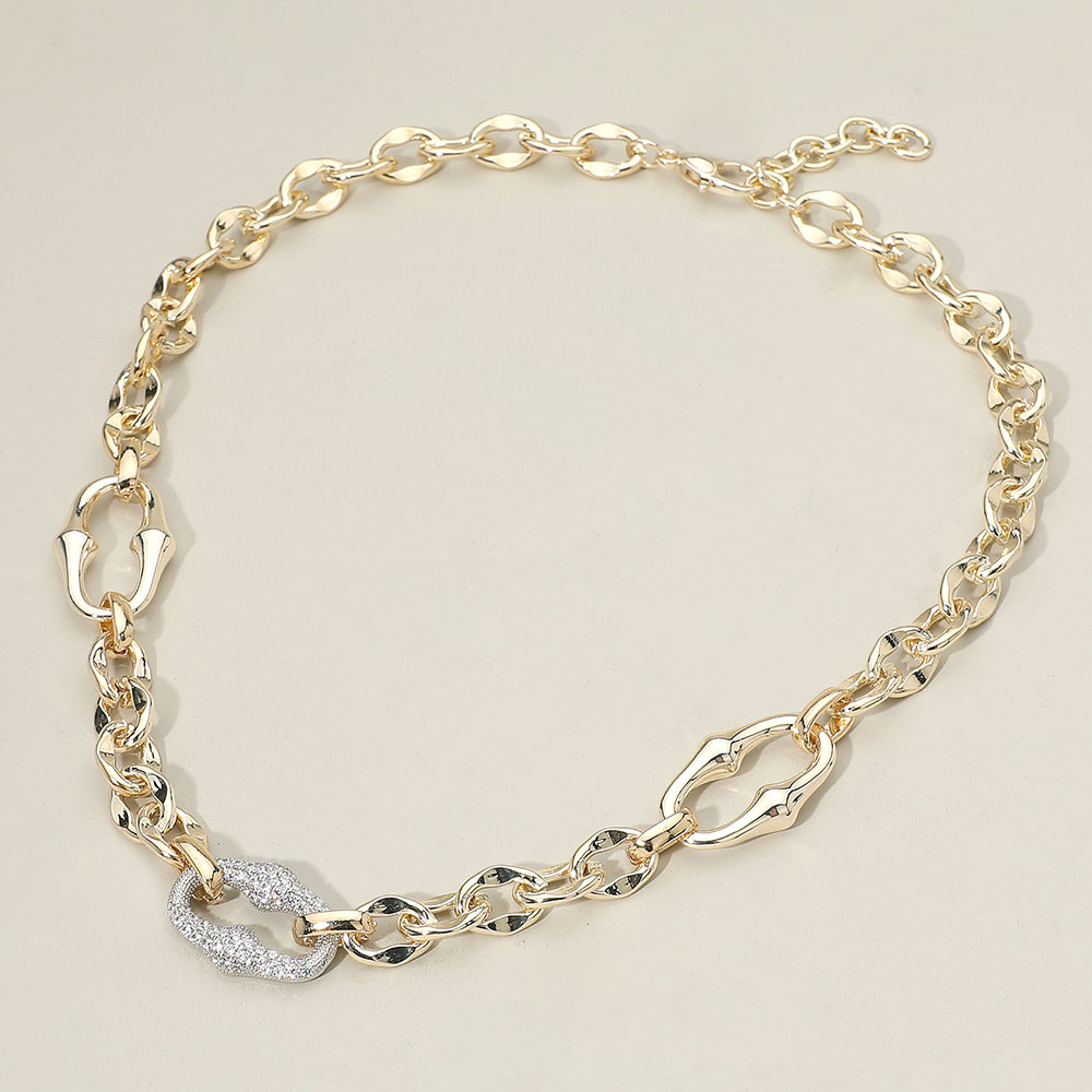 • Modern sculpted link chain necklace featuring bold open links and a sparkling pavĂ© accent connector. A stylish statement piece perfect for elevating everyday outfits or layering with other accessories, offering a chic and versatile finishing touch.