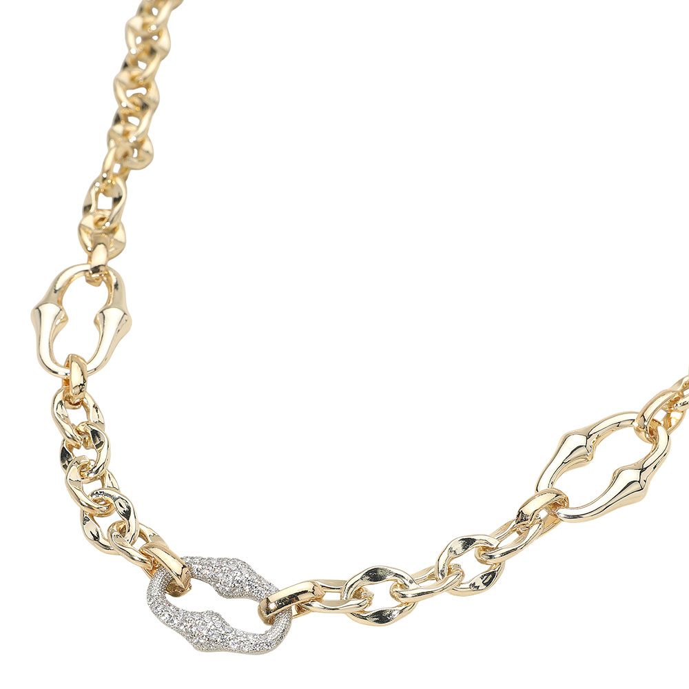 14K Gold Plated CZ Stone Paved Link Accent Sculpted Link Chain Necklace
