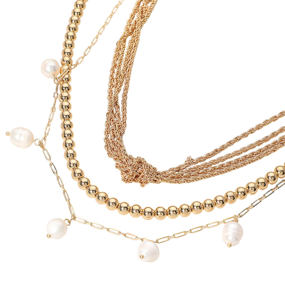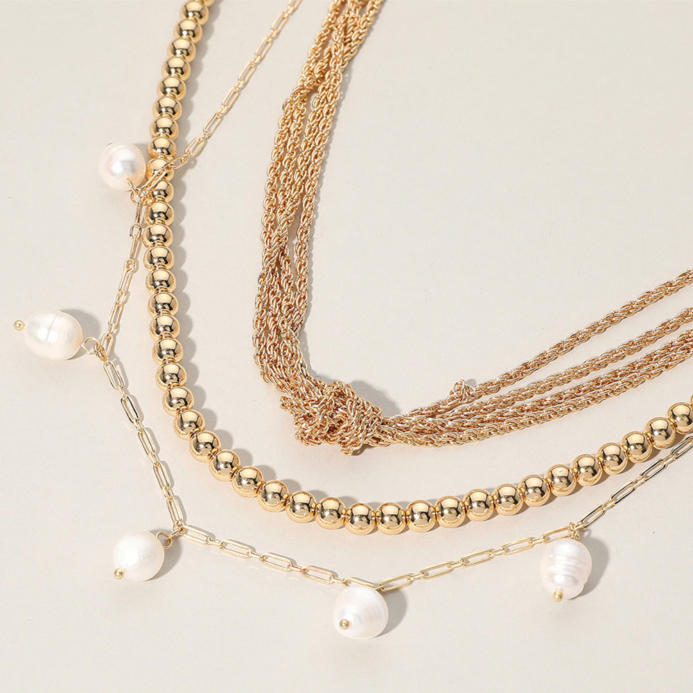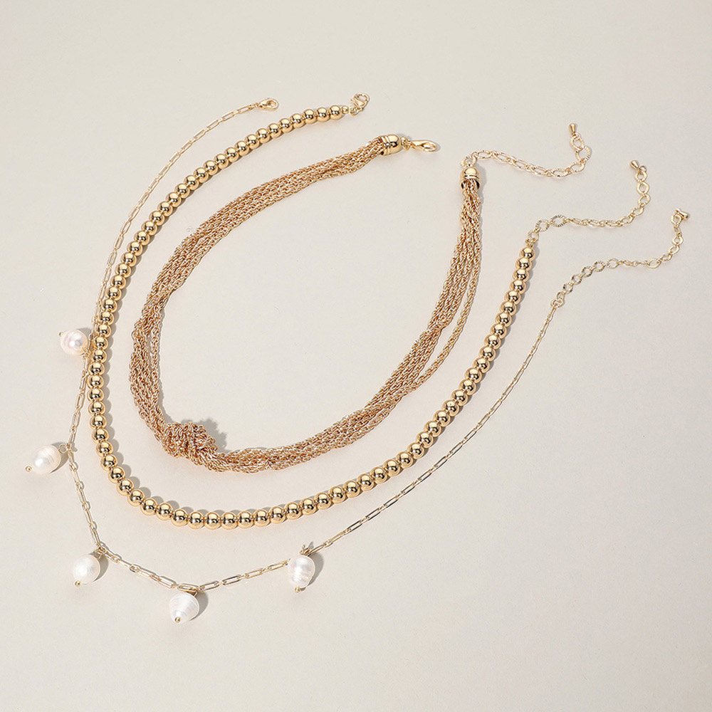 3PCS - Pearl Station Metal Ball Chain Knot Necklaces
