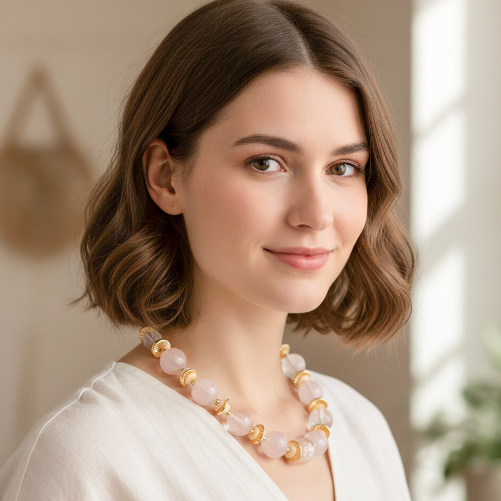 • This refined beaded necklace blends smooth round elements with striking contrasting accents for a polished, eye-catching finish. Its balanced design adds subtle sophistication to any wardrobe, making it an effortless choice for elevating everyday or special-occasion looks.