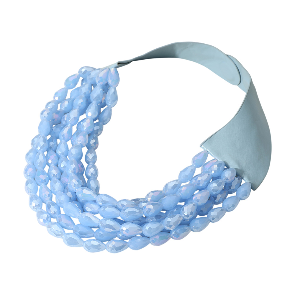 Chunky Faceted Acrylic Teardrop Beaded Multi Layered Faux Leather Magnetic Necklace