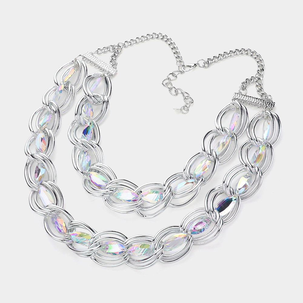 Faceted Marquise Stone Link Chunky Chain Layered Statement Necklace