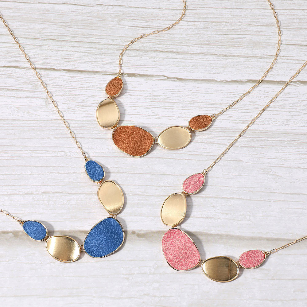 Faux Leather Metal Triple Abstract Plate Link Dangle Earrings