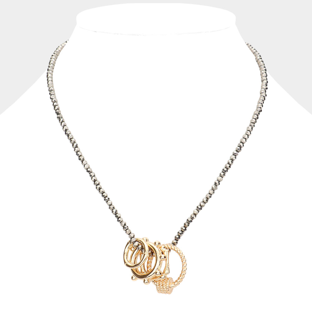Geometric Open Metal Pendant Faceted Beaded Necklace