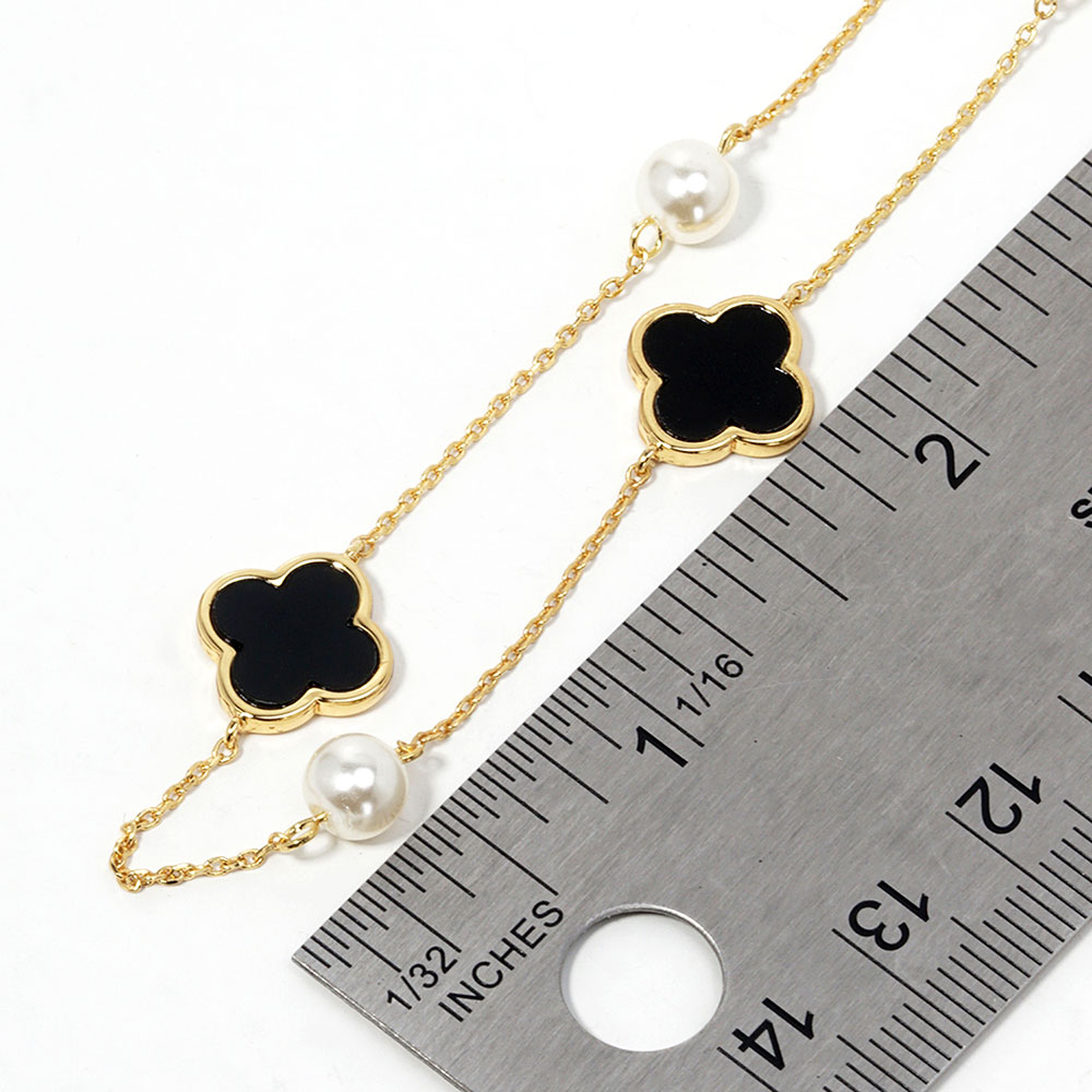 Gold Dipped Mother of Pearl Quatrefoil Station Necklace