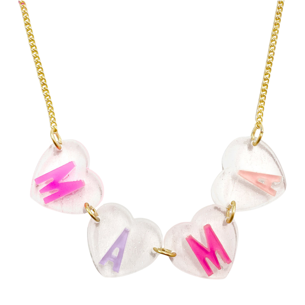 MAMA Message Glittered Lucite Heart Link Necklace