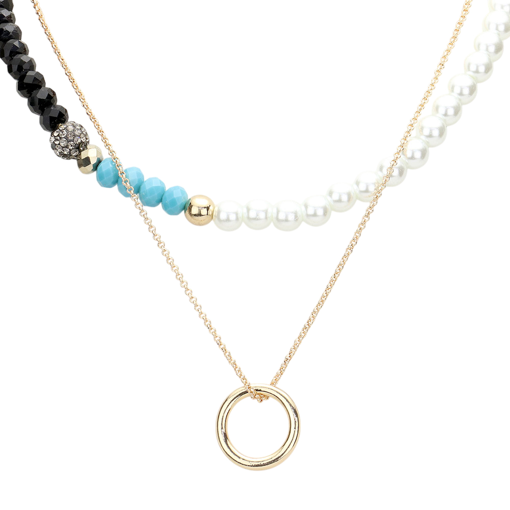 Open Metal Circle Pendant Pearl Shamballa Ball Faceted Beaded Necklace