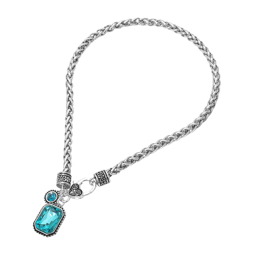 Rectangular Stone Pendant Antique Metal Necklace