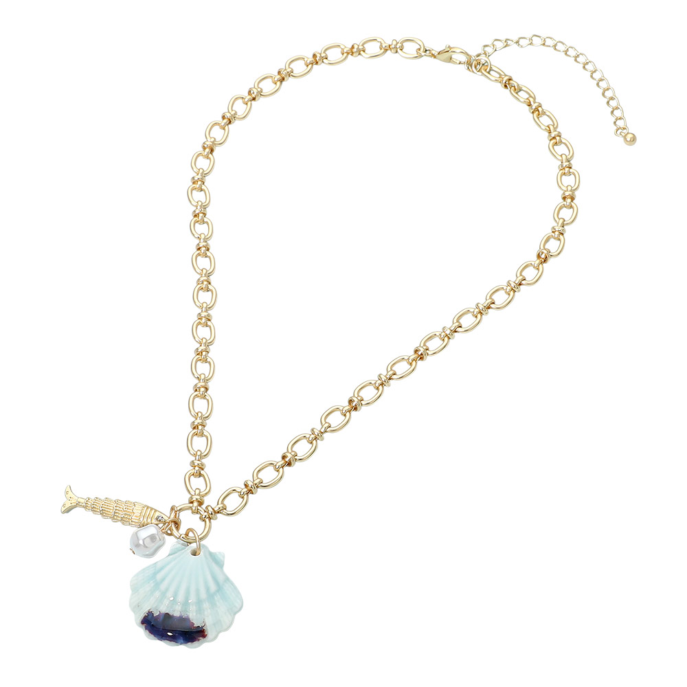 • Coastal-inspired pendant necklace featuring a sculpted shell charm paired with a delicate accent detail on a classic chain. Designed to add an effortless beachy touch to everyday outfits, this necklace is ideal for seasonal collections, resort styling, and giftable accessory assortments for boutiques and online shops.