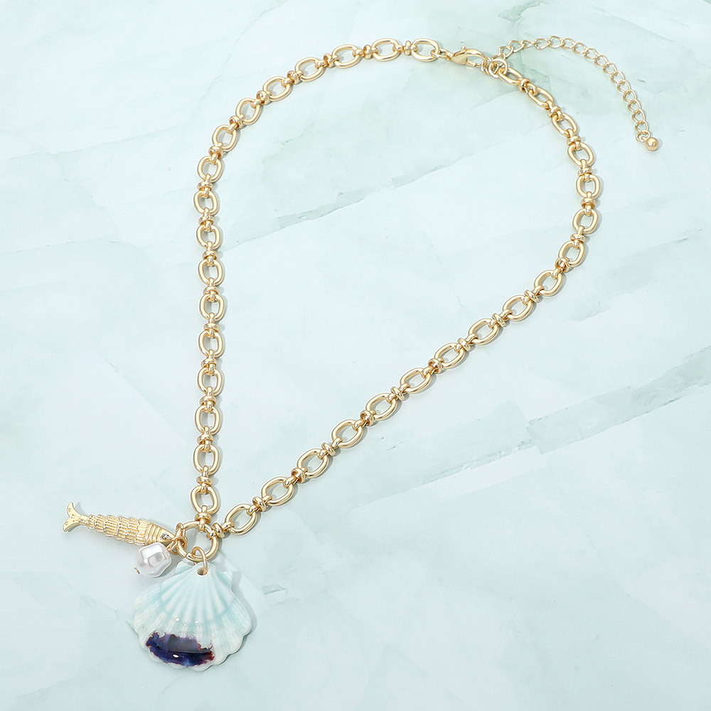 Shell Pearl Fish Charm Pendant Necklace