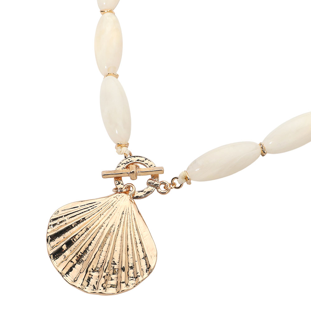 Details • Necklace Size : 23.5" + 4" L • Decor Size : 2.6" L • Elevate your style with this coastal-inspired necklace featuring a beautiful shell pendant. Its unique design combines elegance and relaxed charm, making it the perfect accessory for a variety of outfits. Ideal for adding a touch of sophistication with a natural flair. • Lead and Nickel Compliant