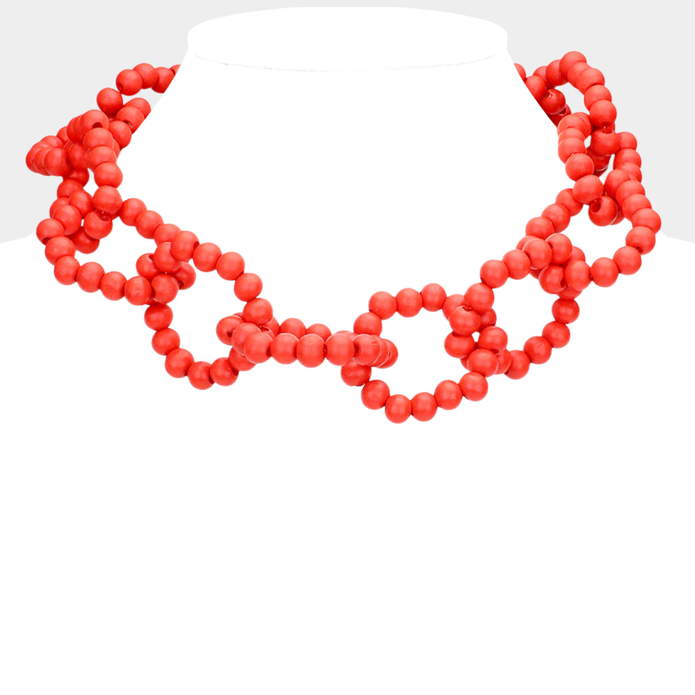 Wood Heishi Beaded Abalone Crescent Pendant Triple Layered Pendant Necklace