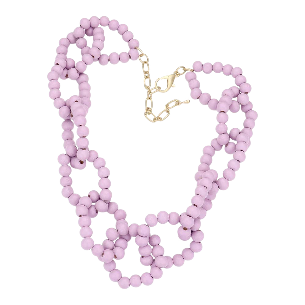Marbled Bead Wood Ball Collar Toggle Necklace