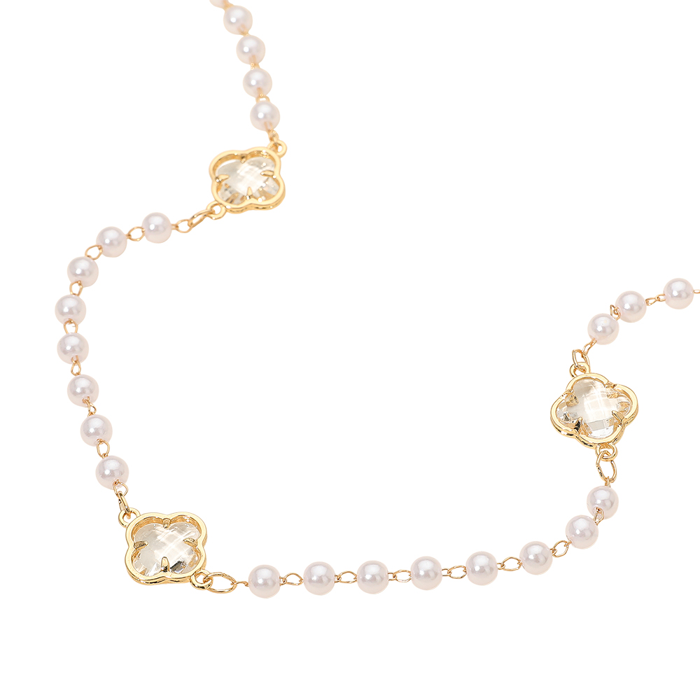 Clear Quatrefoil Cluster Station Pearl Long Necklace