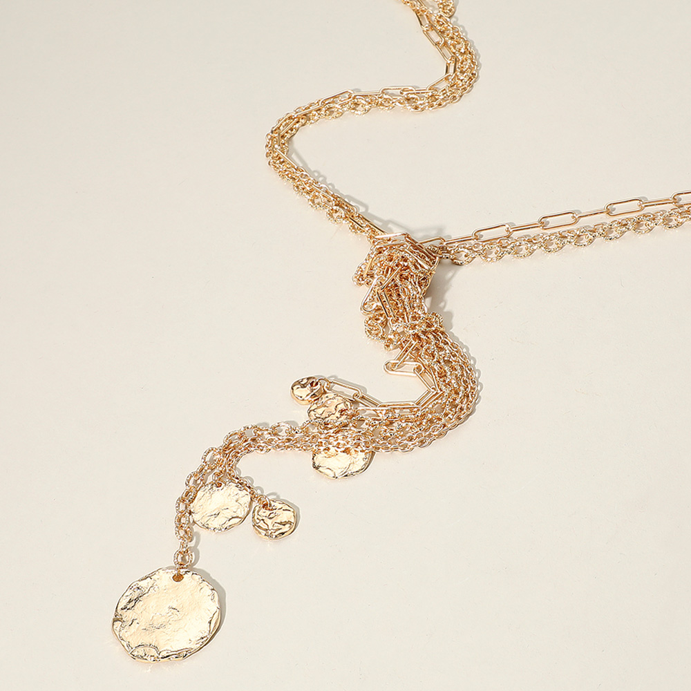 Multi Hammered Metal Coin Drop Pendant Various Chain Layered Necklace