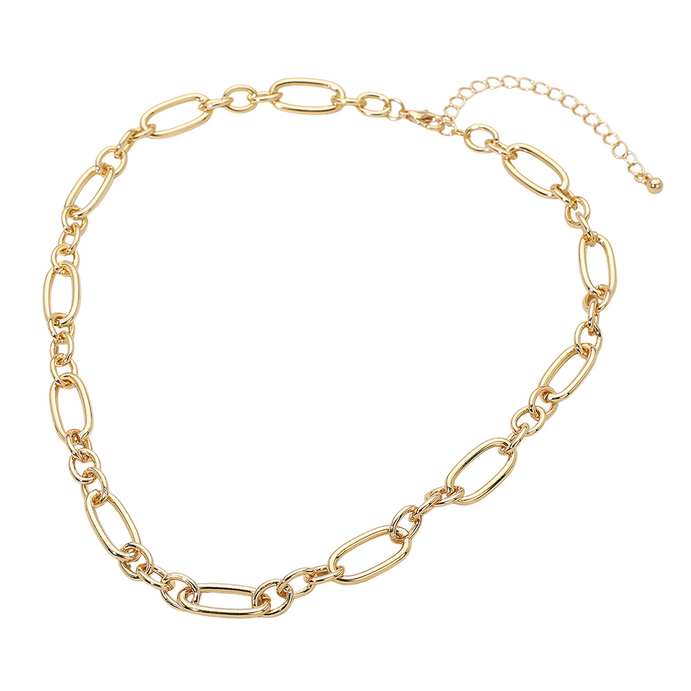 Details • Necklace Size : 17" + 3" L • Decor Size : 0.4" L • Stylish chain-link statement necklace featuring elongated oval links and an adjustable length for a custom fit. Lightweight, modern, and perfect for layering or wearing solo to elevate everyday or evening looks with effortless sophistication. • Lead and Nickel Compliant