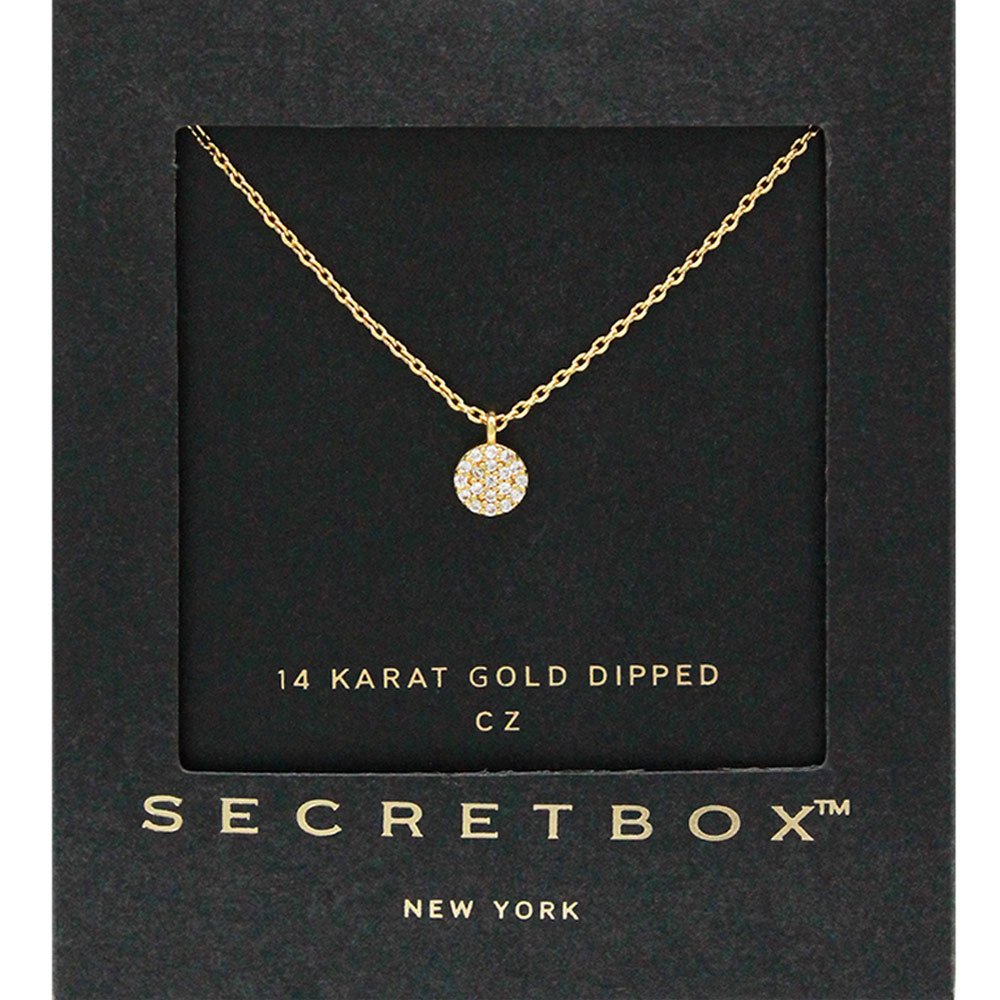 SECRET BOX_14K Gold Dipped CZ Round Pendant Necklace