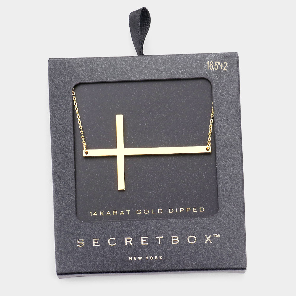 SECRET BOX_14K Gold Dipped Metal Cross Pendant Necklace